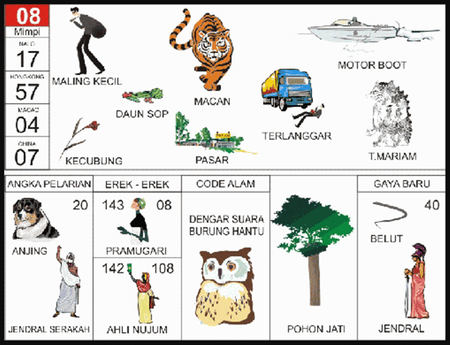 Erek Erek 4D Abjad Lengkap Buku Tafsir Mimpi 4D Abjad A-Z dari Seribu Mimpi 4D Bergambar memuat pelarian, No kode alam, Taysen, Gaya Baru. Erek Erek - Tanya Mimpi. Kurungan Harimau: 0430 - 2430: Kurungan Kelinci: 1119 - 7119: Kutek: 0533 - 2533: Kutu buku: 0170 - 2170 . Baca Juga ! Buku Mimpi 4 Angka Bergambar; 4D = 0236 β 2781; Mimpi Harimau Kawin Di buku erek erek macan, Arti Mimpi macan kawin mempunyai makna berbagai macam, ada yang berarti bagus serta ada juga yang artnya buruk. sebaiknya anda waspada disetiap hal. 2D = 57 β 97 3D = 043 β 775 4D = 9543 β 7768; Mimpi Digigit Harimau